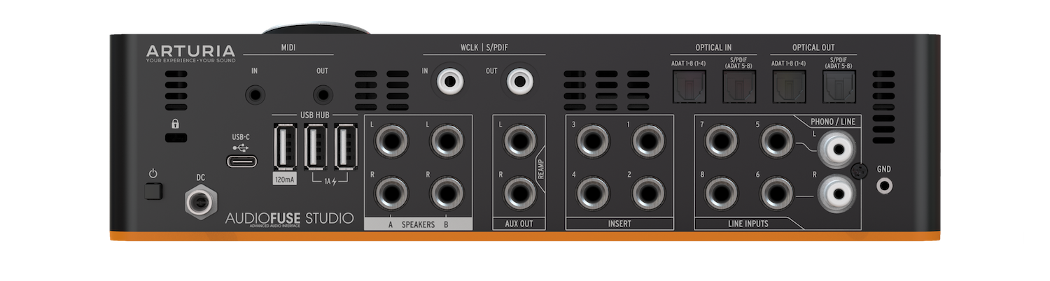 - Świetna łączność: Wejście/wyjście MIDI, kompatybilne wstecz USB-C, wejście/wyjście S/PDIF, wejście/wyjście/thru Word Clock na RCA;