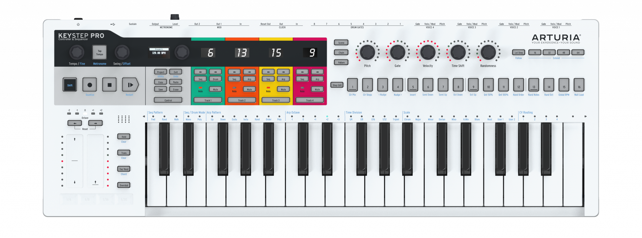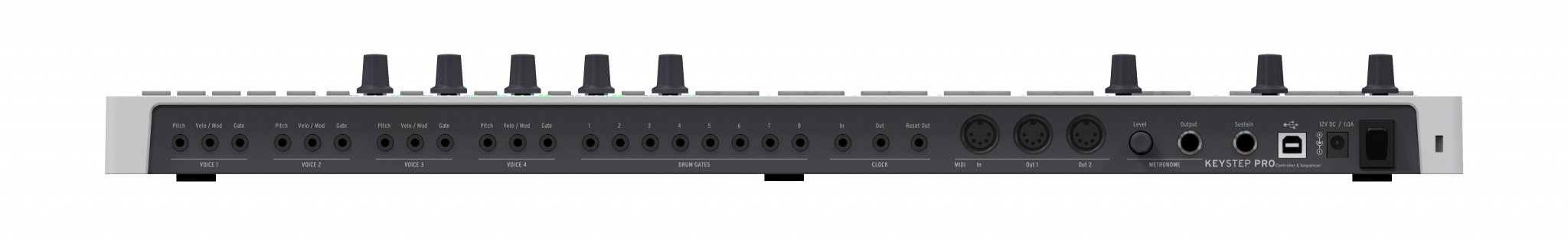 - 37 klawiszy slim keys, czułych na velocity i aftertouch z podświetleniem LED nad każdym klawiszem