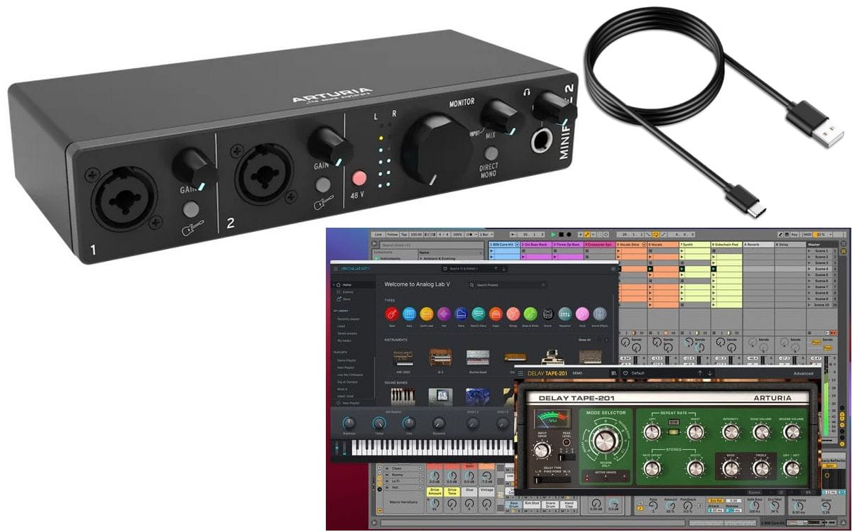 - Ogromny pakiet oprogramowania obejmuje: Ableton Live Lite, Analog Lag Intro, 4 x Arturia FX, 3-miesięczną subskrypcję Auto-Tune, GUITAR RIG 6 LE, 3-miesięczną subskrypcję Splice i wiele więcej…