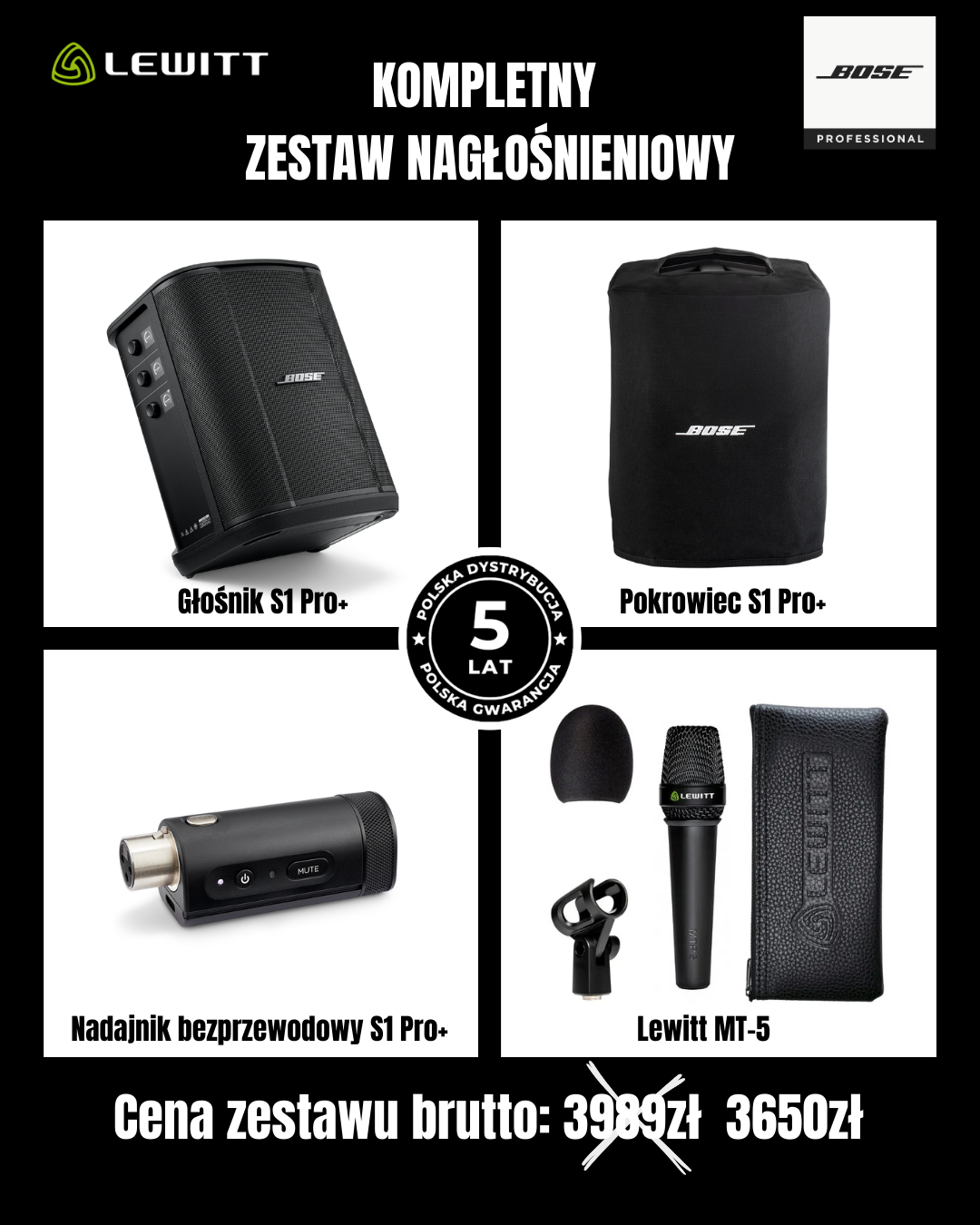 BOSE S1 Pro+ / LEWITT MTP 5 / TRANSMITER XLR / POKROWIEC KOMPLETNY ZESTAW NAGŁOŚNIENIA: