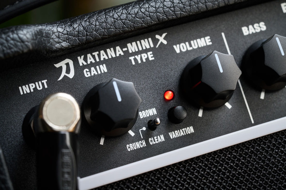 Katana-Mini X to wszechstronny wzmacniacz wywodzący się z naszej serii Katana. Dostępne są trzy podstawowe brzmienia wzmacniacza, a także wariacja tonalna dostępna za pomocą przełącznika na panelu. Jednym z wariantów jest niebarwiony czysty dźwięk do używania Katana-Mini X z gitarą akustyczną lub basową.