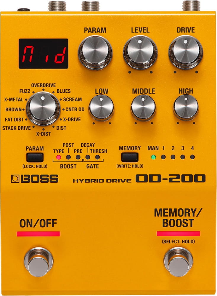 OD-200 Hybrid Drive zapewnia dźwięk na wyższym poziomie, odczucie i elastyczność w przesterowaniu i zniekształceniu, łącząc dekady wiedzy o brzmieniu BOSS z innowacyjnymi technologiami. Oparty na hybrydowych obwodach analogowo-cyfrowych, ten wymarzony efekt zapewnia dowolny dźwięk, jaki można sobie wyobrazić w 12 podstawowych trybach, 15 typów wzmocnienia, ścieżkach wzmocnienia szeregowego / równoległego i innych. Posiada również zaawansowaną bramkę, idealną do eliminowania szumów i zawężenia dźwięków z dużym wzmocnieniem.