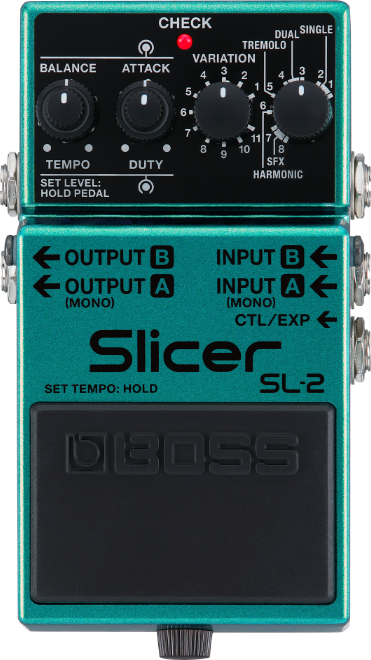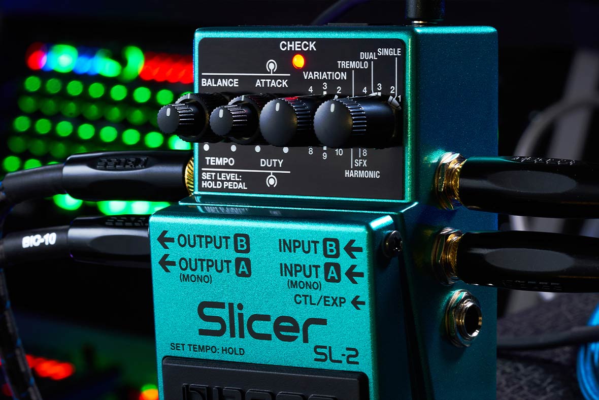 - Słynny efekt Slicer firmy BOSS w zaawansowanym kompaktowym pedale