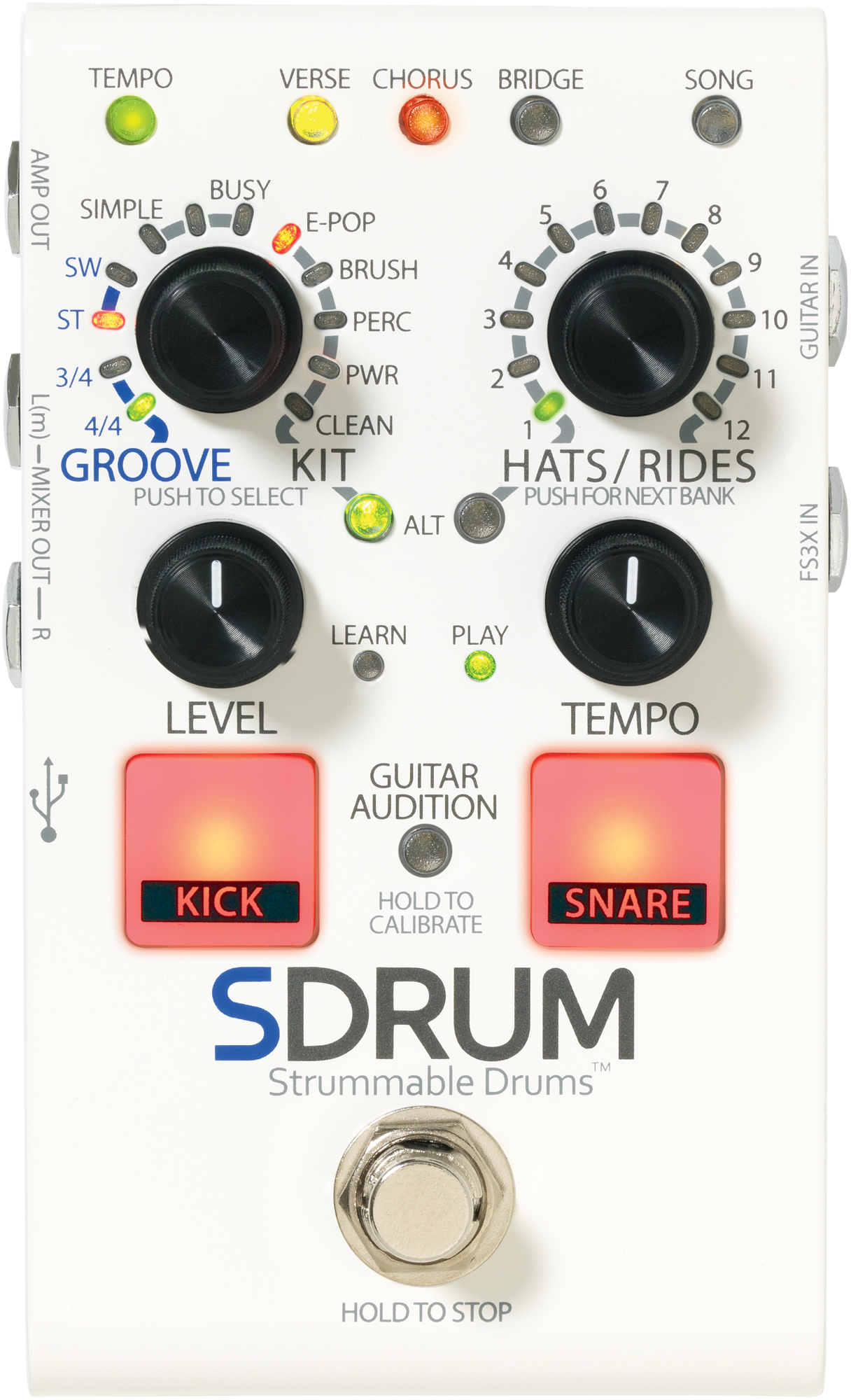 - Technologia BeatScratch™ tworzy partie perkusyjne poprzez analizę gry na gitarze