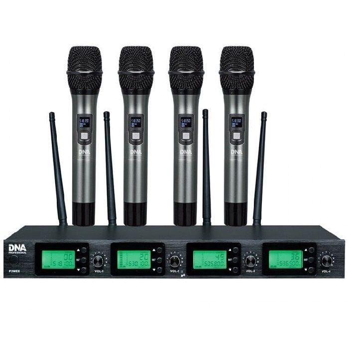DNA RV-4 to profesjonalny, bezprzewodowy zestaw mikrofonowy, w którego skład wchodzą cztery mikrofony doręczne oraz odbiornik fal radiowych przesyłający sygnały audio do nagłośnienia. Komplet stanowi doskonałe rozwiązanie dla zespołów, grup wokalnych oraz firm eventowych. Świetnie sprawdza się na weselach podczas wspólnych biesiad, w karaoke, na scenie w czasie koncertów i różnego typu występów, a także podczas konferencji, spotkań autorskich i różnego typu wydarzeń kulturalnych.