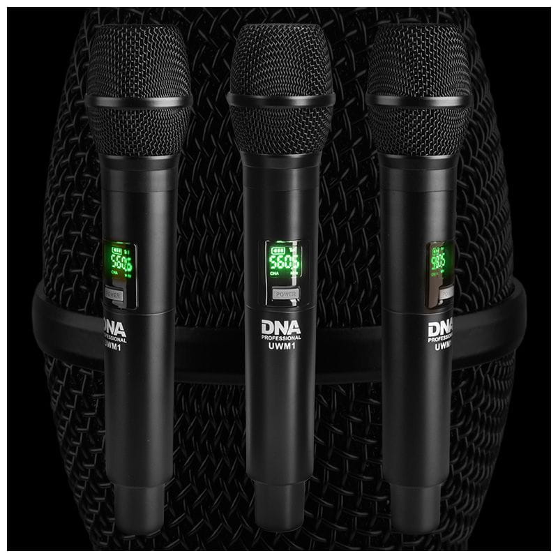 DNA UWM 1 to bardzo łatwy w użyciu bezprzewodowy system mikrofonowy, w którego skład wchodzi bezprzewodowy mikrofon dynamiczny oraz niewielki, kompaktowy odbiornik fal UHF wpinany bezpośrednio w gniazdo wzmacniacza lub miksera audio (jack 6,35 mm). Zestaw pracuje w zakresie od 560 do 590 MHz. Idealnie sprawdza się jako nagłośnienie dla wokalistek i wokalistów, zespołów muzycznych, firm eventowych, animatorów gier i zabaw, mikrofon do karaoke, a także jako nagłośnienie dla różnego typu instytucji kulturalnych i oświatowych.