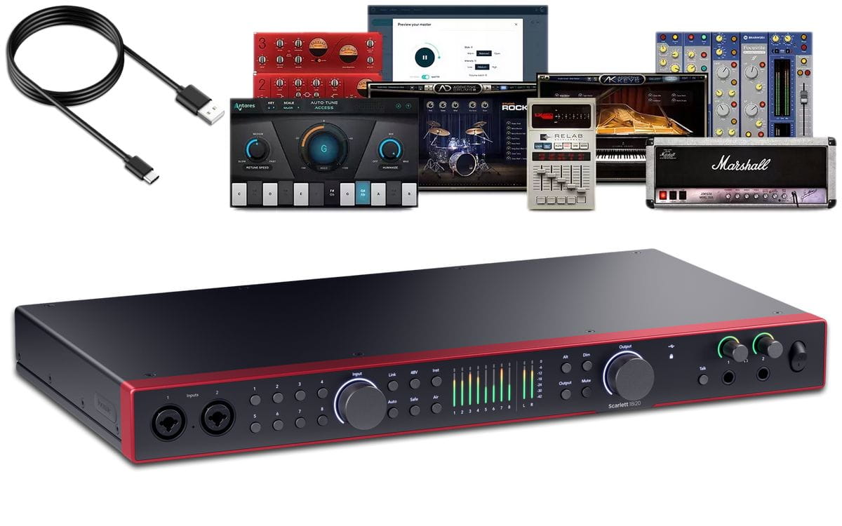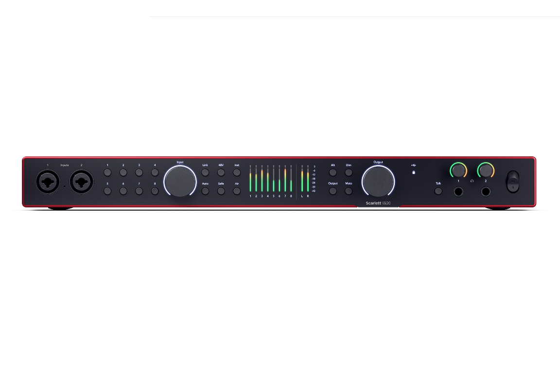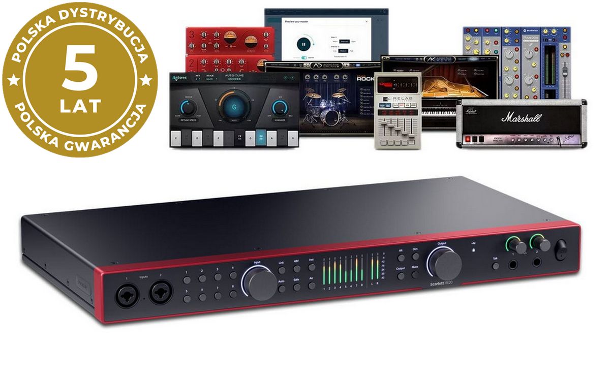 Scarlett 18i20 to wiodący w branży interfejs audio USB dla studiów muzycznych, z konwerterami zaczerpniętymi bezpośrednio z flagowej serii RedNet firmy Focusrite. Posiada 18 wejść i 20 wyjść - w tym osiem przedwzmacniaczy mikrofonowych, wejścia Hi-Z i liniowe, ADAT, SPDIF, MIDI i Word Clock.