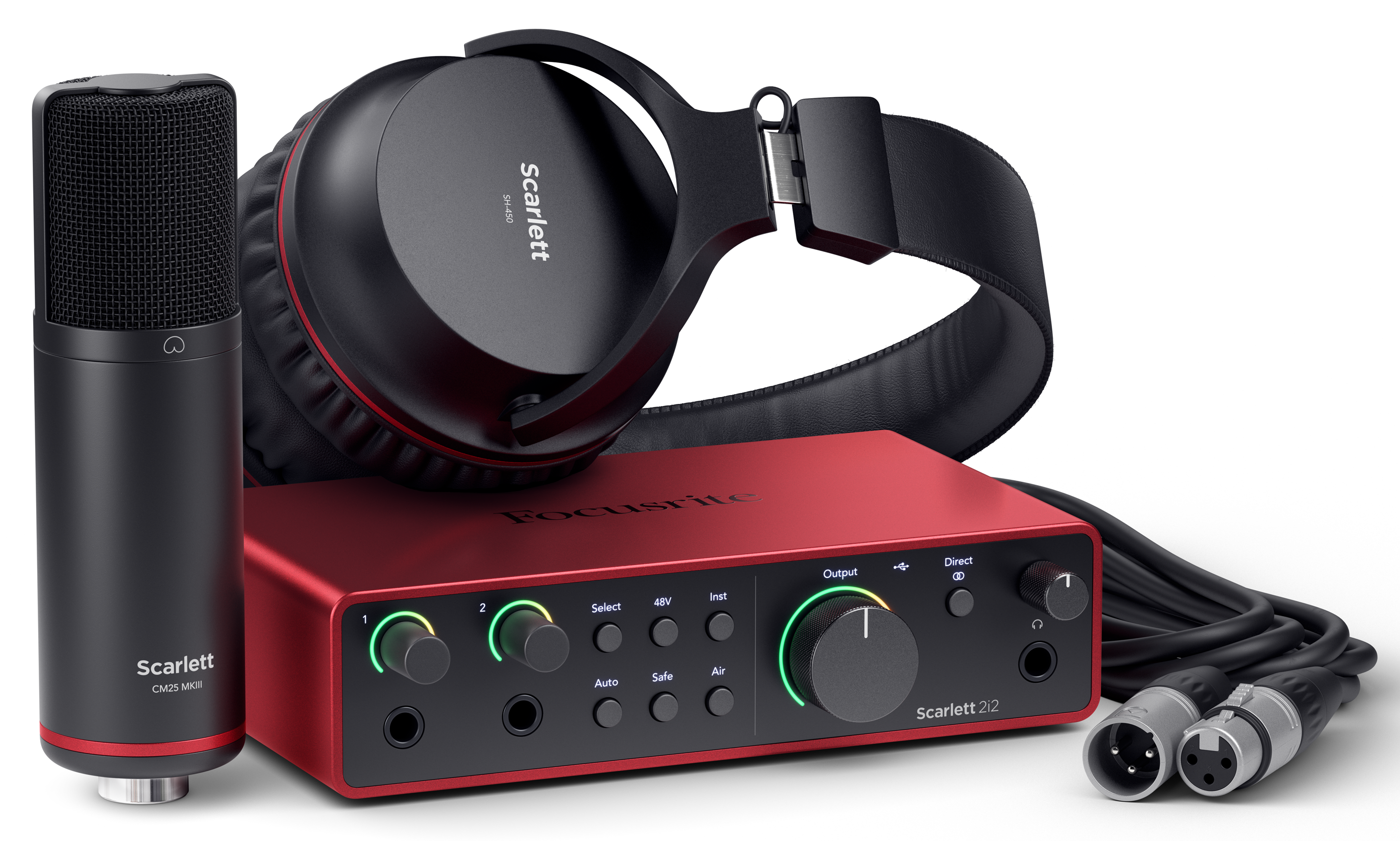 Ustaw mikrofon CM25 MkIII do nagrywania wokalu i gitary i podłącz go do zdalnie sterowanych przedwzmacniaczy Scarlett 2i2 czwartej generacji - najczystszych i najbardziej szczegółowych w historii Focusrite. Nigdy nie zabraknie Ci mocy dzięki ogromnemu zapasowi wzmocnienia - aż do 69 dB. Podłącz gitarę elektryczną do jednego z wejść instrumentalnych Hi-Z w Scarlett 2i2 - poczujesz się jak grając na wzmacniaczu. Słuchaj szczegółowo przez słuchawki SH-450. Scarlett zapewnia profesjonalną jakość dźwięku Focusrite wszędzie tam, gdzie tworzysz muzykę.