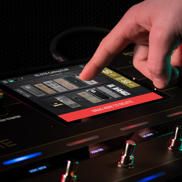 Sercem HeadRush Prime to 7-calowy ekran dotykowy (dostępna na wyłączność, opatentowana technologia) i interfejs, który jest wyjątkowo intuicyjny dla muzyków – możesz dosłownie dotykać, przesuwać oraz przenosić i upuszczać poszczególne elementy w celu tworzenia i edycji swoich zestawów gitarowych, basowych i wokalnych z niesamowitą szybkością i precyzją. Duży wyświetlacz zapewnia także bardzo czytelne informacje podczas występów na żywo; szczególnie przy wprowadzaniu drobnych zmian w brzmieniu z wykorzystaniem pedału ekspresji w trybie „hands-free”. Wszystko w HeadRush Prime zostało zaprojektowane tak, aby w prosty i intuicyjny sposób tworzyć niesamowicie brzmiące zestawy w ciągu kilku sekund.