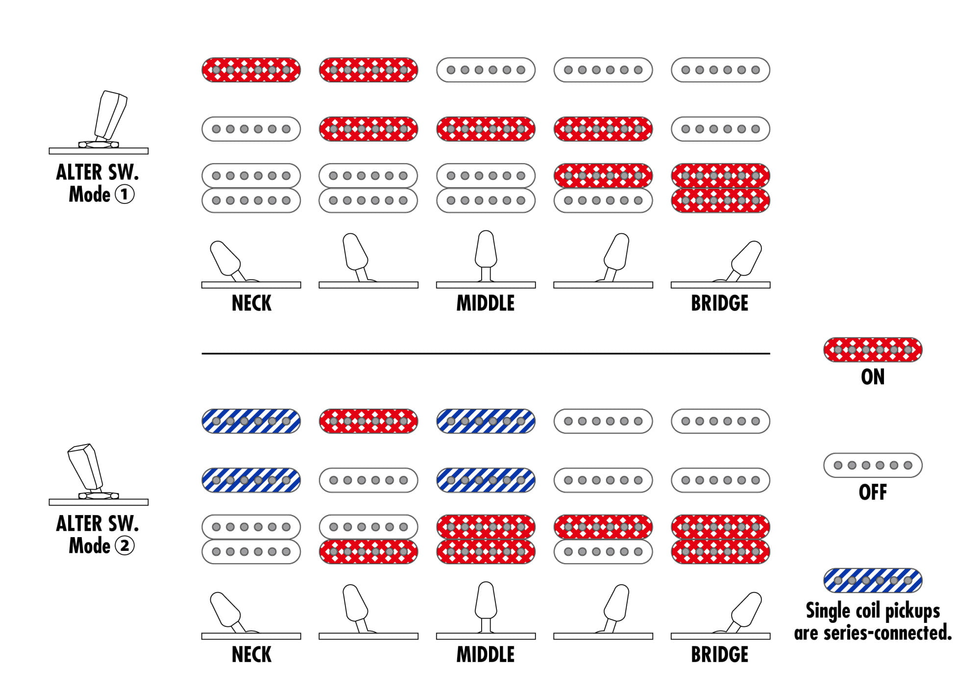 - 5-pozycyjny przełącznik, system dyna-MIX