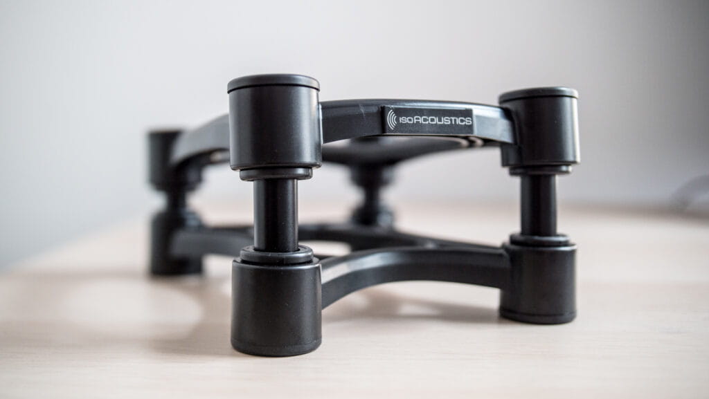 Ważnym aspektem konstrukcji standu jest możliwość regulacji wysokości i kąta nachylenia głośnika. Dzięki temu można optymalizować jego położenie względem słuchacza i wyeliminować odbicia fal dźwiękowych od powierzchni nośnej. W typowej konfiguracji Desktop Audio Workstation (DAW), słuchacz znajduje się w odległości od 1 do 1,5 metra od monitorów, a jego uszy około 50 cm nad powierzchnią roboczą. Dlatego też odpowiednią wysokość i kąt nachylenia monitorów można osiągnąć właśnie za pomocą izolatorów IsoAcoustics.