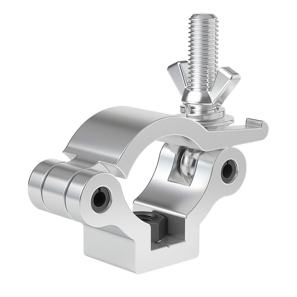Zacisk na kratownicę z nakrętką M10 jest przeznaczony do użytku w połączeniu z uchwytem izolacyjnym V120 do montażu na kratownicy 1,5” (38 mm). Solidny aluminiowy zacisk owija się wokół kratownicy i zaciska za pomocą regulowanego pokrętła, aby zapewnić szczelne, niezawodne połączenie i długotrwałą wydajność.