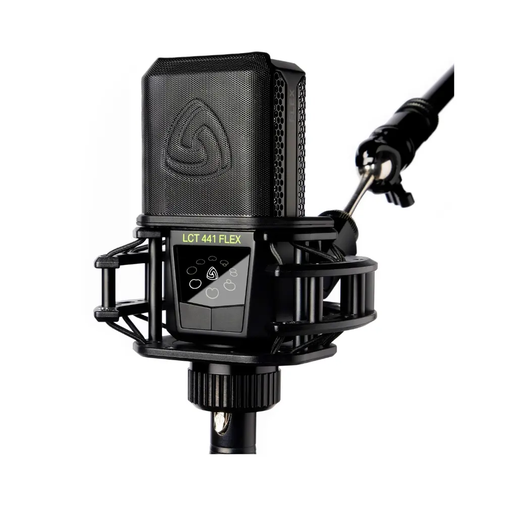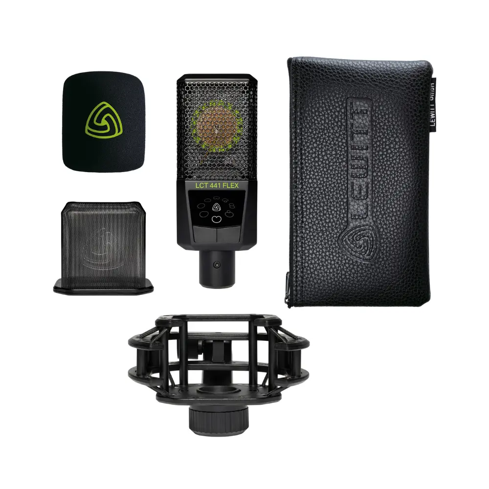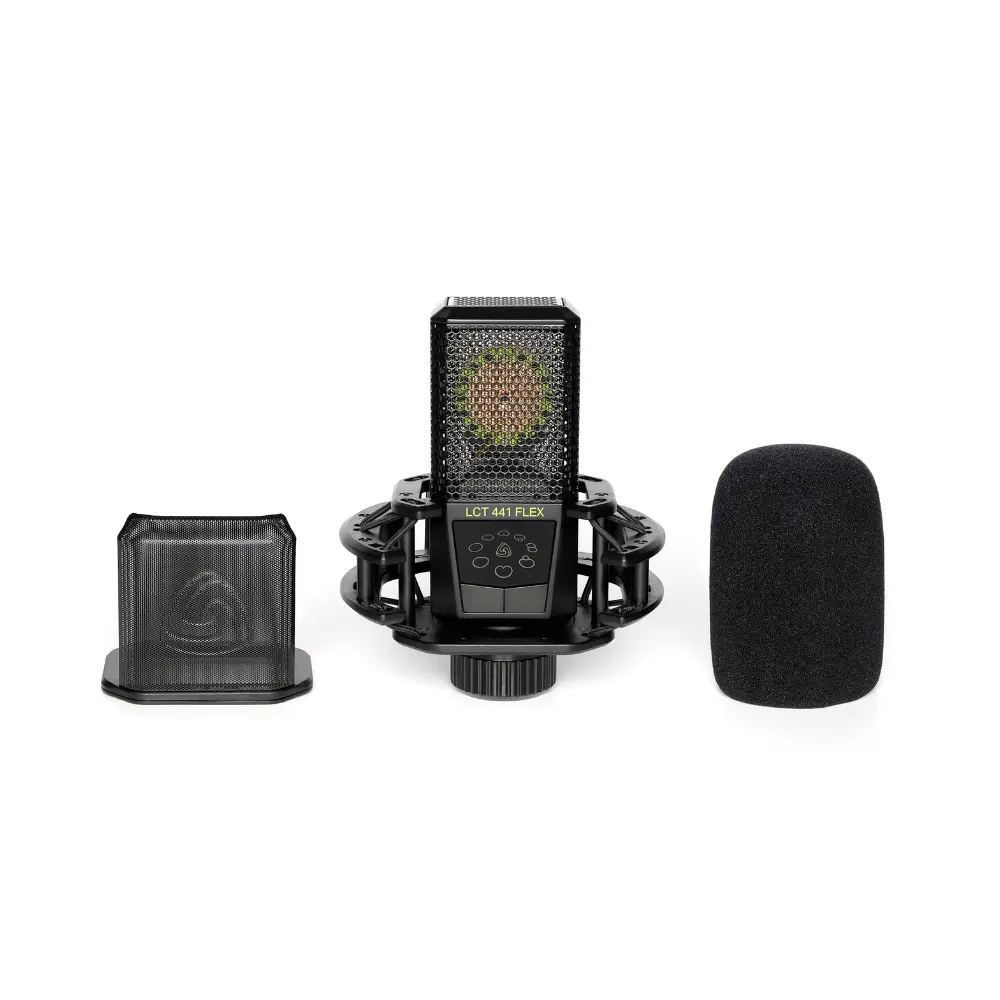LCT 441 FLEX jest wyposażony w uchwyt antywstrząsowy, który minimalizuje szumy strukturalne, torbę transportową, osłonę przeciwwietrzną i magnetyczny pop-filtr, który doskonale integruje się z konstrukcją mikrofonu.