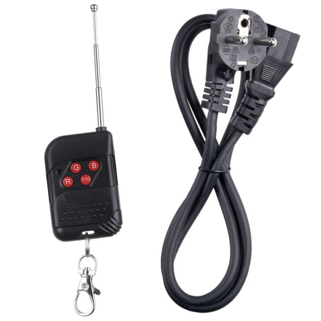 Dymiarka Light4Me Fog 1200 może być obsługiwana za pomocą bezprzewodowego pilota radiowego o zasięgu nawet 15 metrów. Zdalne sterowanie jest bardzo wygodne w przypadku, kiedy dymiarka zainstalowana jest w trudno dostępnych miejscach, takich jak kratownice sceniczne i rampy oświetleniowe. Pilot umożliwia start emisji dymu, a także wybór koloru podświetlenia i tworzenie mieszanek barwowych.