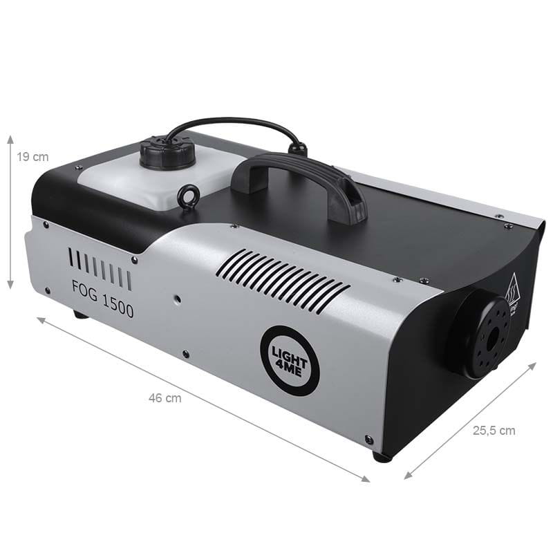 Light4Me Fog 1500 to kompaktowa i bardzo wydajna wytwornica dymu (wytwornica mgły) sterowana za pomocą przewodowego lub bezprzewodowego pilota, wyposażona w grzałkę o mocy 1500 watów, dzięki czemu szybko się nagrzewa. Maszyna stanowi doskonałe narzędzie pracy dla mobilnych DJ-ów, zespołów muzycznych, a także firm organizujących różnego typu eventy. Doskonale sprawdza się na scenie, w klubach tanecznych, dyskotekach, a także na weselach, 100-dniówkach, 18-nastkach lub zabawach sylwestrowych.