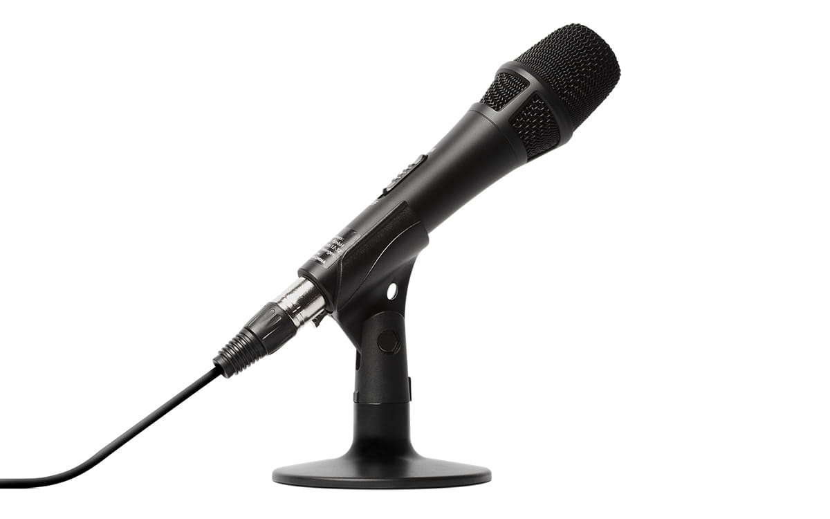 Elektretowy mikrofon pojemnościowy, charakterystyka kardioidalna, włącznik do użytku z komputerem osobistym, adapter USB z wyjściem słuchawkowym, w zestawie stojak na biurko, kable mikrofonowy i USB