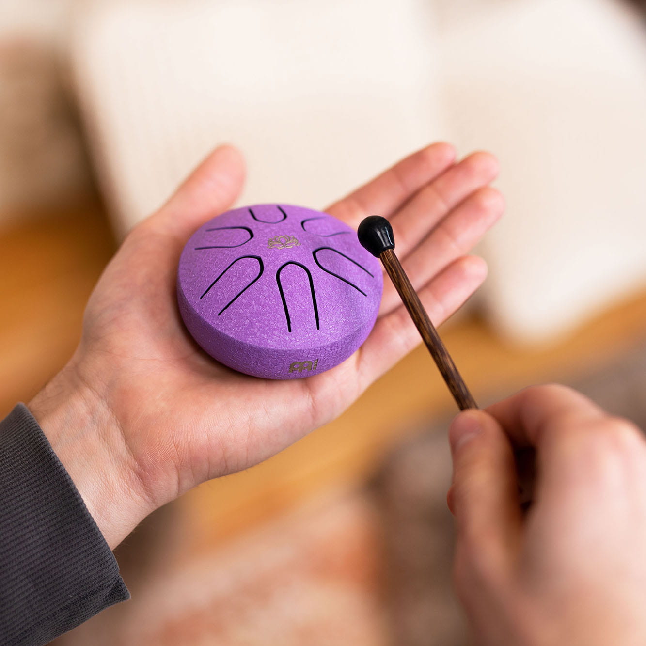 Ta pomniejszona wersja naszych standardowych stalowych bębnów z językiem jest świetnym rozwiązaniem, zapewniającym nieskończone możliwości gry a kieszonkowy rozmiar pozwala zawsze mieć go przy sobie. Od jogi i terapii dźwiękiem po sale lekcyjne, biura lub Twój stolik kawowy, na tym bębnie o średnicy 3 cali może grać każdy i wszędzie, niezależnie od umiejętności.