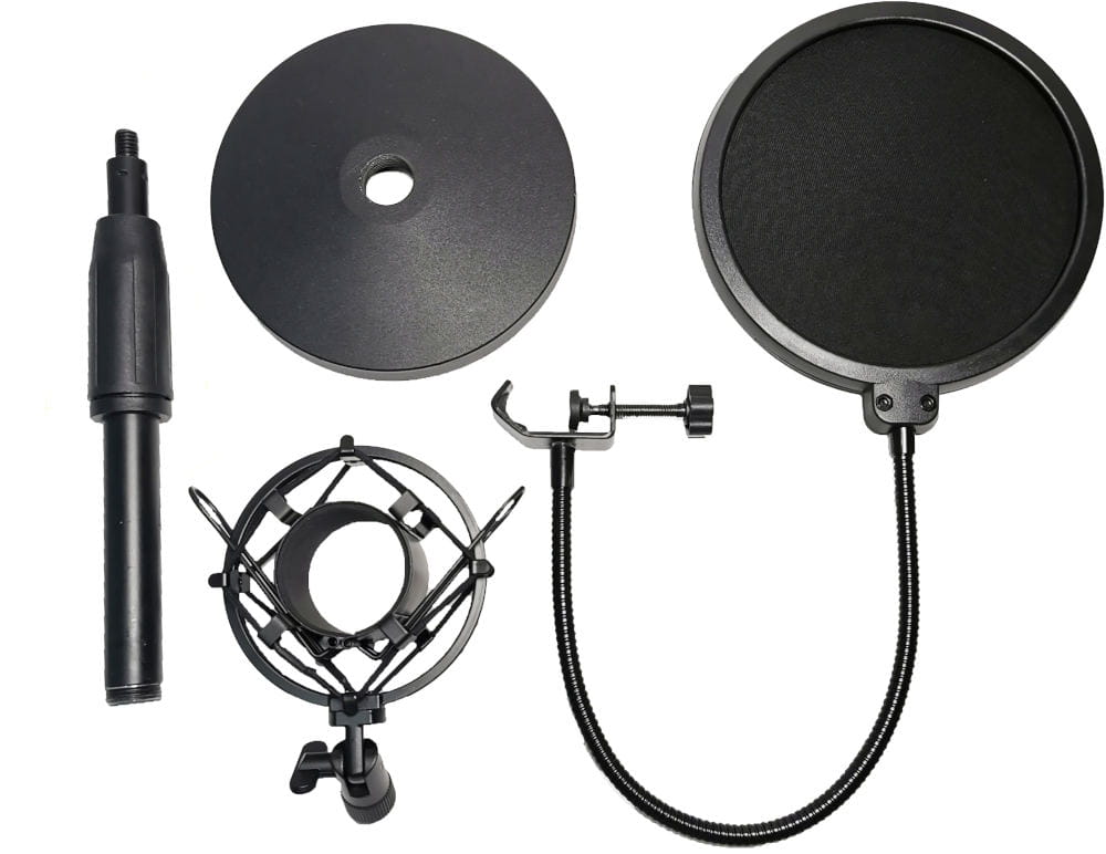 - W zestawie znajduje się koszt antywibracyjny, pop filtr, statyw.
