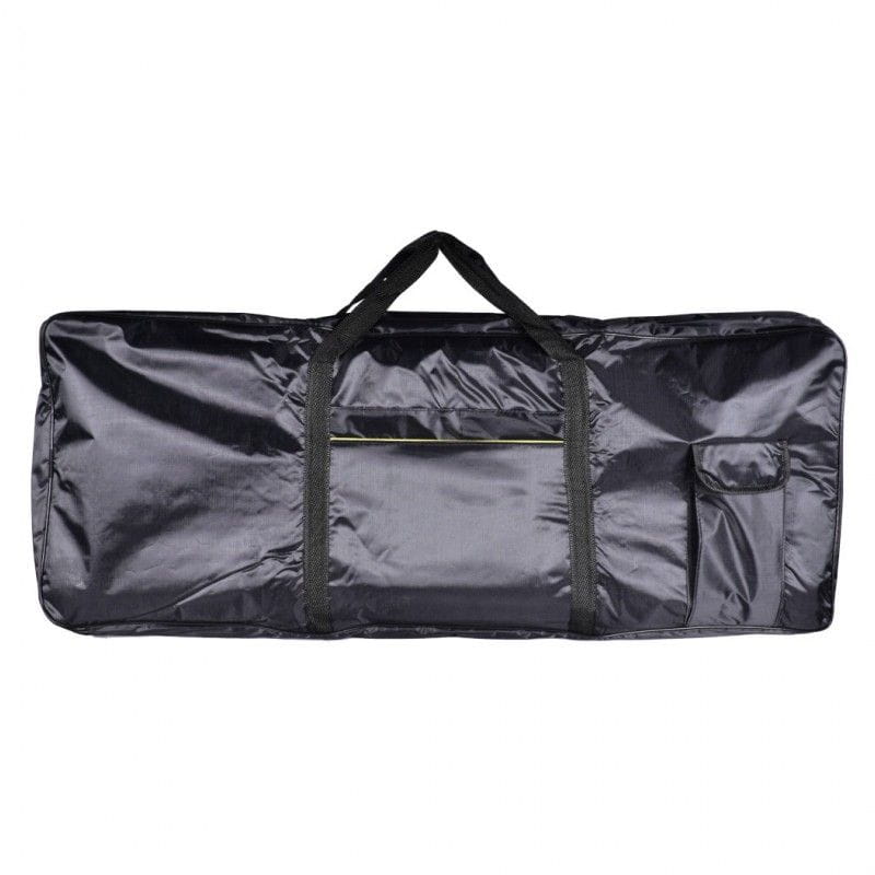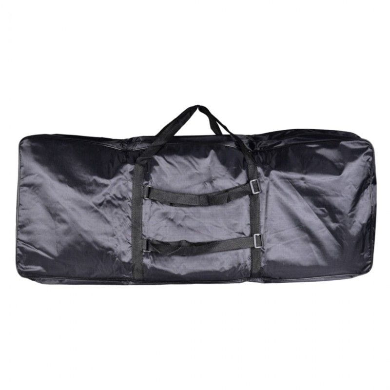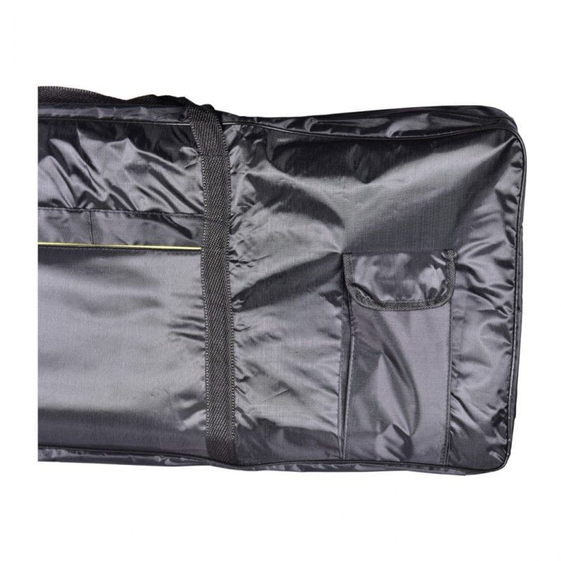 NN KEY61 BAG to solidny, czarny pokrowiec na 61-klawiszowy keyboard. Torba wykonana została z mocnej, syntetycznej tkaniny odpornej na wilgoć. Wszystkie jej szwy krawędziowe wzmacnia elastyczna taśma zapobiegająca uszkodzeniom i przypadkowym rozdarciom. Podwójne ściany wypełnione są 5-milimetrową gąbką usztywniającą, która dodatkowo zabezpiecza sprzęt. Pokrowiec na keyboard NN KEY61 BAG posiada dwustronnie rozsuwany zamek błyskawiczny otwierający torbę z trzech stron. Dzięki temu dostęp do instrumentu jest łatwiejszy, niż w przypadku pokrowców otwieranych wzdłuż jednej krawędzi. Bezpieczne przenoszenie zapewniają uchwyty wykonane z wytrzymałej taśmy nośnej oraz regulowane szelki pozwalające nosić torbę jak plecak. Dwie zamykane kieszenie umożliwiają spakowanie kabli zasilających, przewodów audio, a także nut i akcesoriów potrzebnych każdemu muzykowi. NN KEY61 BAG to solidny, ergonomiczny, a jednocześnie tani pokrowiec na keyboard