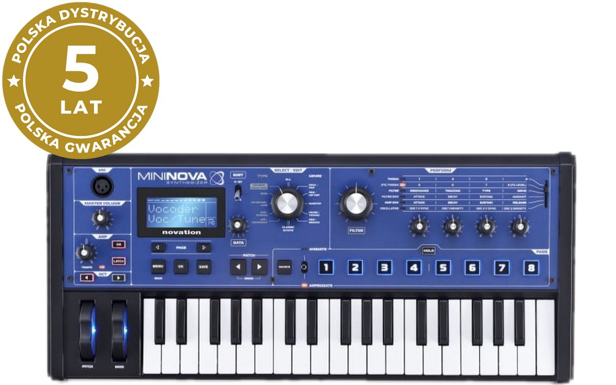 Novation MiniNova to kompaktowy syntezator przeznaczony zarówno na scenę jak i do studia. Silnik syntezy, efekty i filtry zaczerpnięto z większego syntezatora Novation UltraNova. Na pokładzie znajduję się 256 niesamowitych barw, z szybkim dostępem do zmiany patchy, pogrupowanych wg stylistyki oraz porządkowo. Wybrany dźwięk może być modulowany za pomocą 4 gałek, gałki filtra i ośmiu programowalnych przycisków "animate" co daje bardzo duże możliwości kreowania dźwięku w czasie rzeczywistym. Mininova to instrument 18 głosowy wyposażony w klawiaturę mini 37 klawiszy.