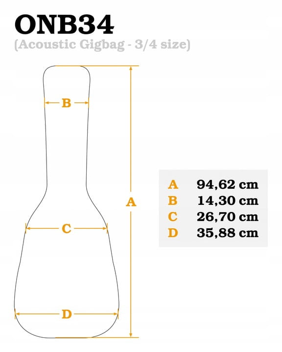 - Uniwersalny pokrowiec, pasujący do gitar klasycznych w rozmiarze 3/4