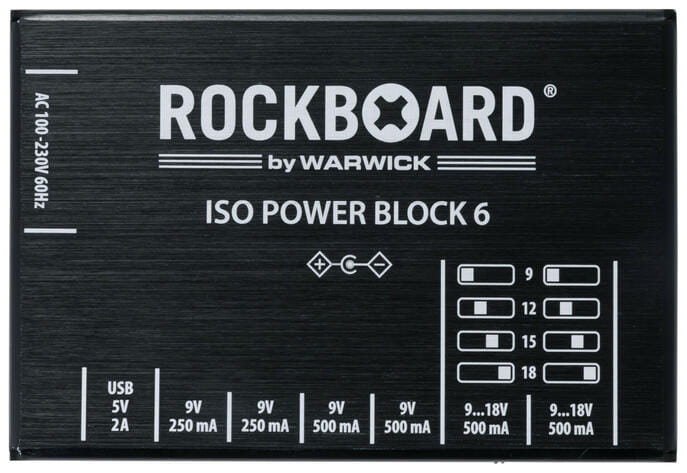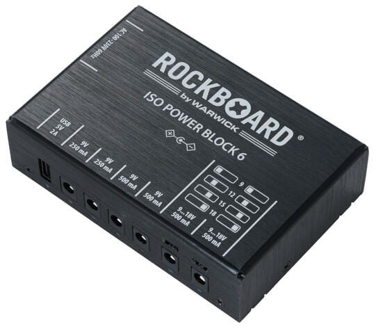 RockBoard ISO Power Block 6 IEC to multi-zasilacz do efektów z 6 izolowanymi transformatorami i wysoko filtrowanymi gniazdami zasilającymi oraz pojedynczym wyjściem USB 5V. Power Block 6 IEC został zaprojektowany, aby zasilać do 6 efektów jednocześnie bez żadnych zakłóceń. Zaawansowana technologia filtrowania w gniazdach zasilających DC, zapobiega powstawaniu szumów o wysokiej częstotliwości. Natomiast, dzięki zastosowaniu indywidualnego zabezpieczenia przed zwarciem gniazd, podłączone efekty są chronione w przypadku wystąpienia spięcia. Dzięki wyznaczonej diodzie LED dla każdego gniazda zasilającego, wskazującej na jego prawidłowe działanie, można szybko zidentyfikować ewentualne problemy bez utraty zasilania pozostałych efektów.