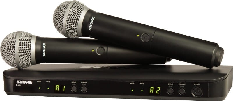 - 2x mikrofon z serii SM 58 niezwykle wytrzymały mikrofon wokalny, zaprojektowany specjalnie dla wokalistów