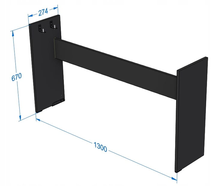 Specjalnie zaprojektowane uchwyty stalowe łączą pianino ze statywem. Zapewniając solidną konstrukcję.