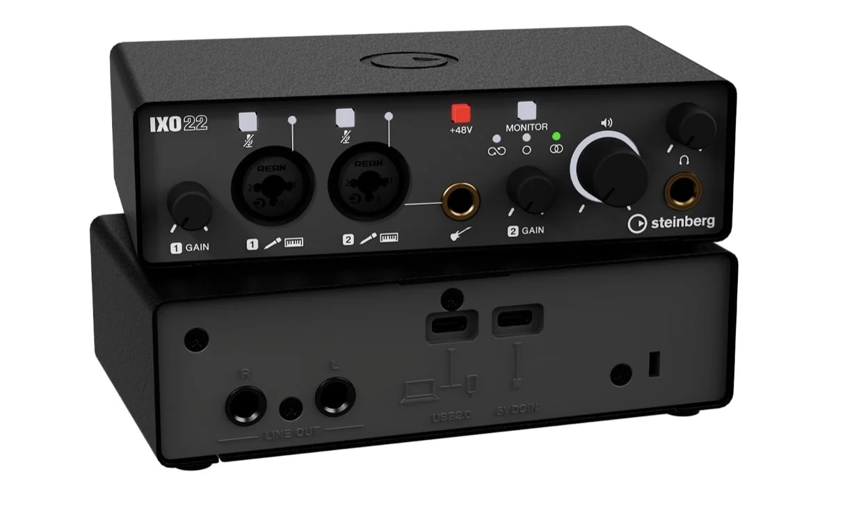 Steinberg IXO 22B, profesjonalna karta dźwiękowa USB z 2 wejściami i 2 wyjściami, oferuje doskonałą jakość dźwięku z niskim opóźnieniem. Idealna dla muzyków i producentów, obsługuje 24-bit/192kHz, zapewniając wyjątkową klarowność dźwięku.
