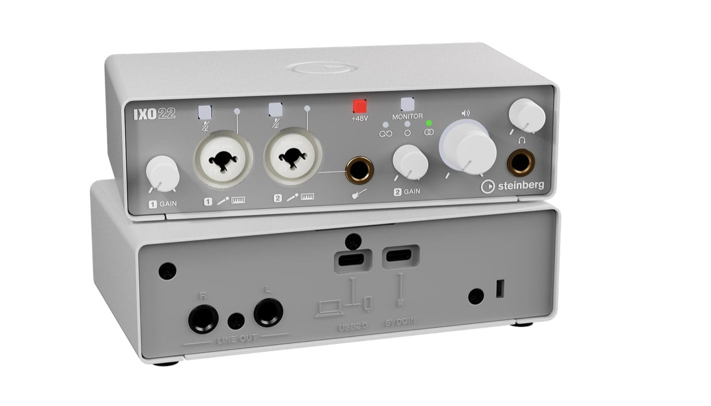 Steinberg IXO 22WH to zaawansowana karta dźwiękowa USB z białym wykończeniem, oferująca 2 wejścia/2 wyjścia, wysoką jakość dźwięku 24-bit/192kHz i niskie opóźnienie. Idealna do nagrywania i miksowania muzyki.