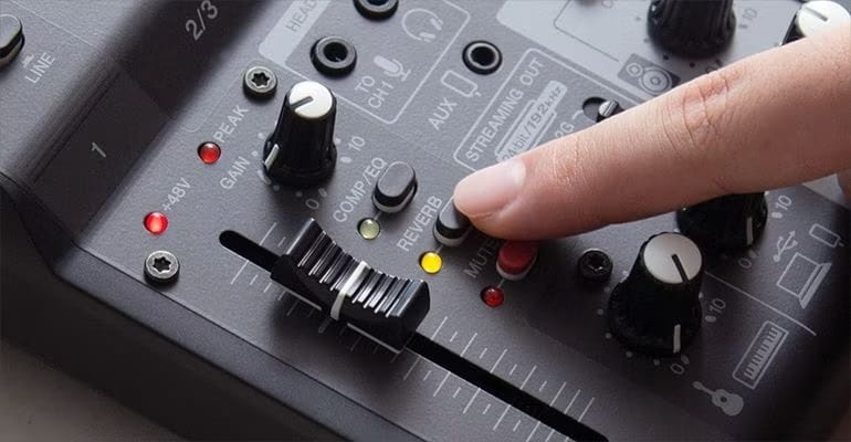 AG03MK2 jest wyposażony w różnorodne fizyczne elementy sterujące, w tym duży tłumik 60 mm, który pomaga intuicyjnie i szybko kształtować dźwięk i zarządzać nim. Nowo dodany przycisk wyciszania umożliwia natychmiastowe wyłączenie sygnału mikrofonu, jeśli wymaga tego sytuacja. Pogłosem i wyciszeniem można nawet sterować za pomocą opcjonalnego przełącznika nożnego FC5, uwalniając ręce do innych zadań.
