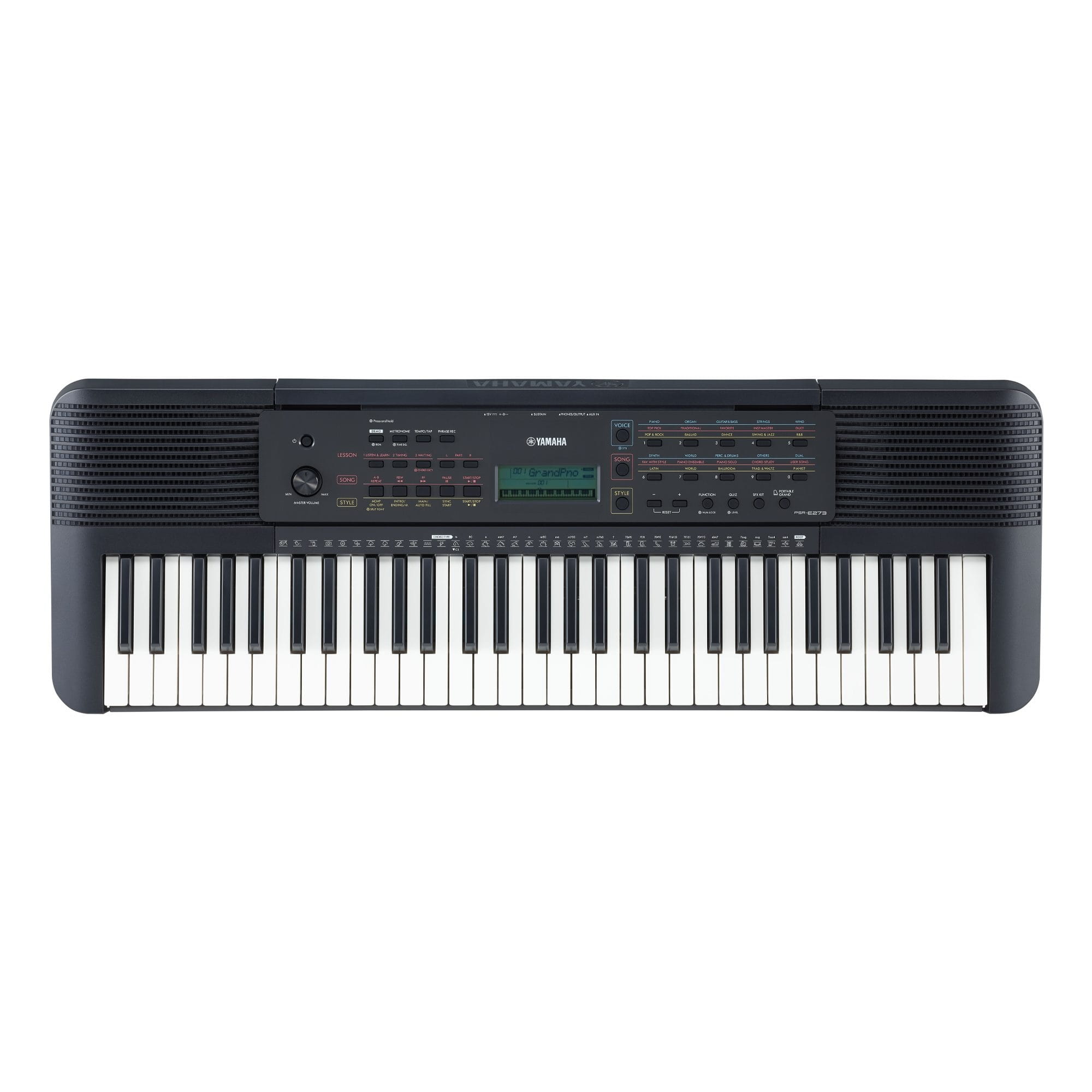 Oprócz wielu pięknych dźwięków fortepianu, ten keyboard ma wiele realistycznych głosów instrumentów, w tym gitarę i bas, perkusję i perkusję, a nawet zabawne efekty dźwiękowe, w tym szczekające psy i miauczące koty. Wybierz swoje ulubione głosy podczas gry lub ćwiczeń. Ciesz się wspaniałą ekspresją wbudowanego w klawiaturę głosu fortepianu Yamaha!